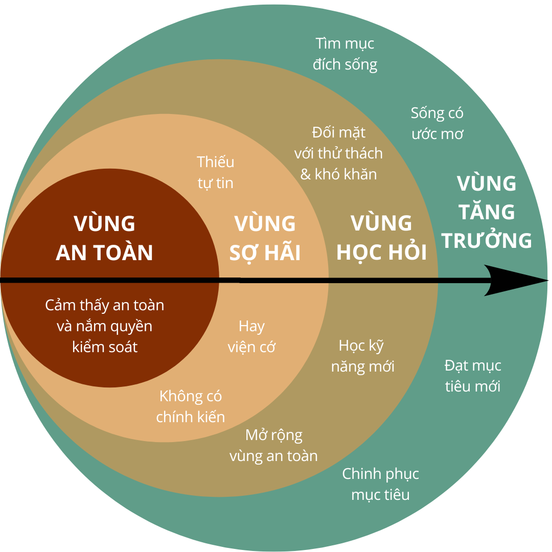 Chúng ta thường đạt tiến bộ rõ rệt nhất khi đặt mình vào thử thách vừa đủ, nghĩa là ngay phía ngoài vùng an toàn, nhưng không cách giới hạn quá xa. Nếu bạn đang cảm thấy rất thoải mái về công việc, học tập… nhiều khả năng bạn đang ở trong vùng an toàn. Ngược lại, nếu bạn đang cảm thấy quá mệt mỏi, khổ sở và bế tắc, rất có thể bạn đã lựa chọn một mục tiêu quá khó hoặc quá nhiều mục tiêu cùng lúc.