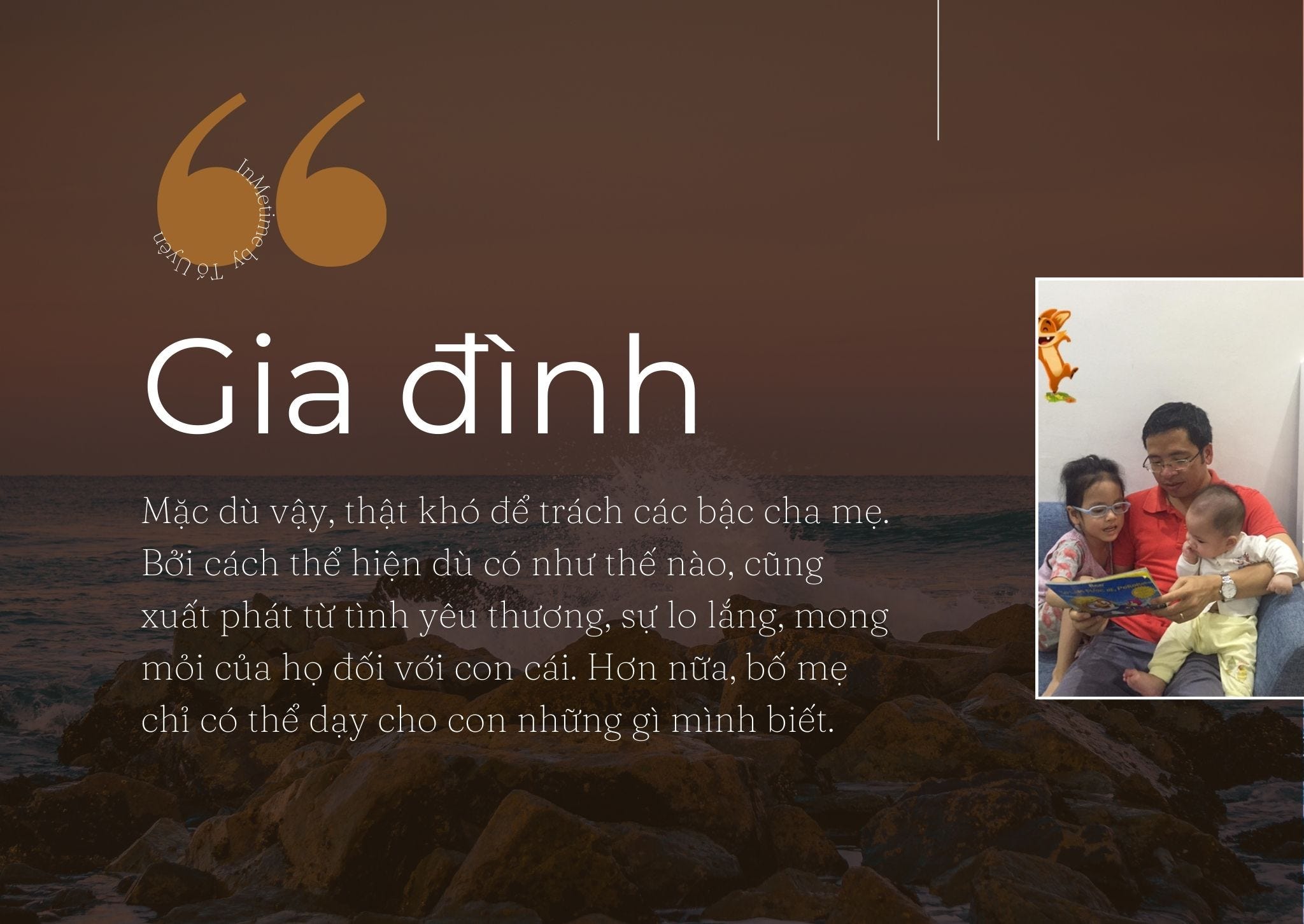 Mặc dù vậy, thật khó để trách các bậc cha mẹ. Bởi cách thể hiện dù có như thế nào, cũng xuất phát từ tình yêu thương, sự lo lắng, mong mỏi của họ đối với con cái. Hơn nữa, bố mẹ chỉ có thể dạy cho con những gì mình biết. Ngày hôm nay bạn và tôi được mở mang tầm mắt, được học lên cao mới hiểu những điều này. Nhưng ngay chính những hiểu biết đó cũng nhờ có bố mẹ đã nuôi nấng, chăm sóc, trao cho ta cơ hội. Tôi nghĩ điều chúng ta có thể làm là biết ơn những điều đã nhận được, trau dồi kiến thức và tự rèn luyện mình để có thể lựa chọn cách cư xử khác đi với con cái.